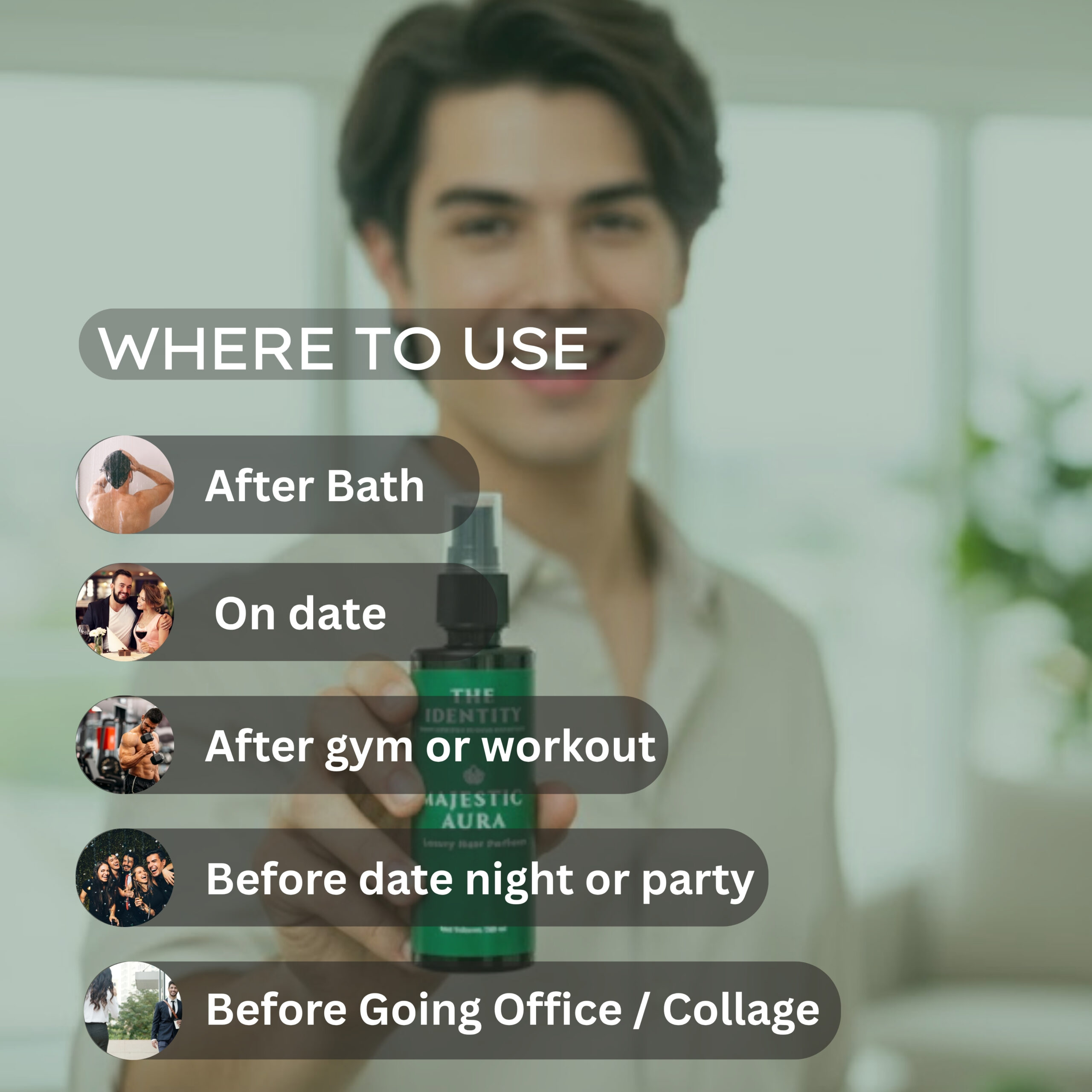 Experience the confidence of hair that smells fresh, feels light, and looks healthy all day. Elevate your grooming routine with Majestic Aura — your new signature scent.