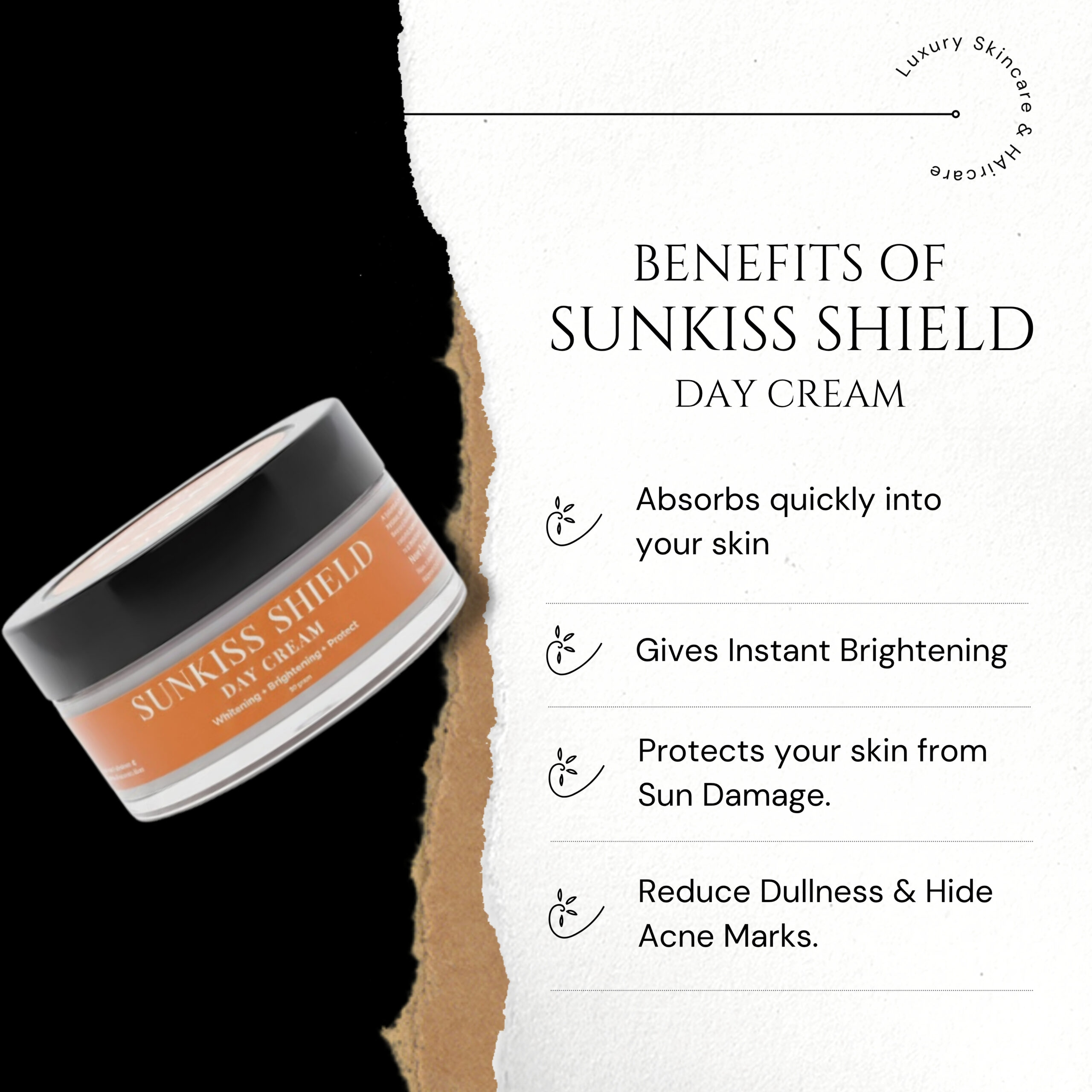 Sunkiss Shield Day Cream is a lightweight brightening day formula that protects, hydrates, and instantly enhances your natural glow. With UV protection + skin-brightening actives, it keeps your skin fresh, soft, and visibly radiant all day long.